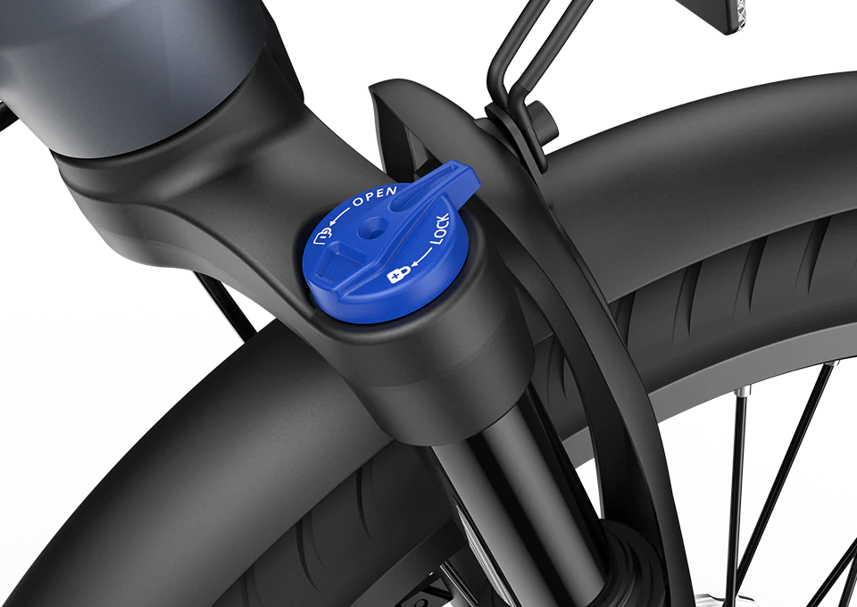 Das automatische Zweigangsystem des Heckmotors passt die Gangschaltung automatisch an Ihre Geschwindigkeit an. Dies sorgt für eine sanfte Beschleunigung aus dem Stillstand und erleichtert das Bergauffahren. Die einstellbare Lockout-Federgabel bietet Vielseitigkeit und verbesserte Kontrolle über unterschiedliche Geländearten, was das Steigen von Hügeln erleichtert.
